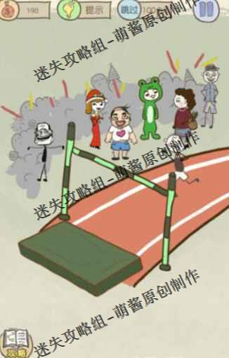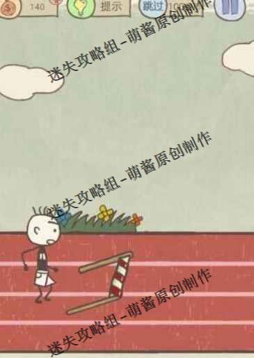 这一关比较简单,出现的障碍只有一个跨栏,各位只要长按这个跨栏接着向右边滑动就能使这个跨栏倒下了,这样主角就能够顺利地跑到终点了。