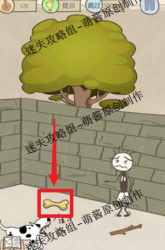 让狗跳到墙外的方法很简单,只要将它的食物扔出去即可。各位看见这根骨头没,长按拖动这根骨头到墙外边再松手,狗就会跳到墙外了,非常的简单。
