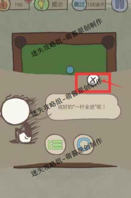 首先,各位先点击这个橙色的桌球,然后会弹出一个界面,这里不要慌,点击“X”按钮,接着再点击剩下的那颗蓝色的球就能完成一杆进洞了。