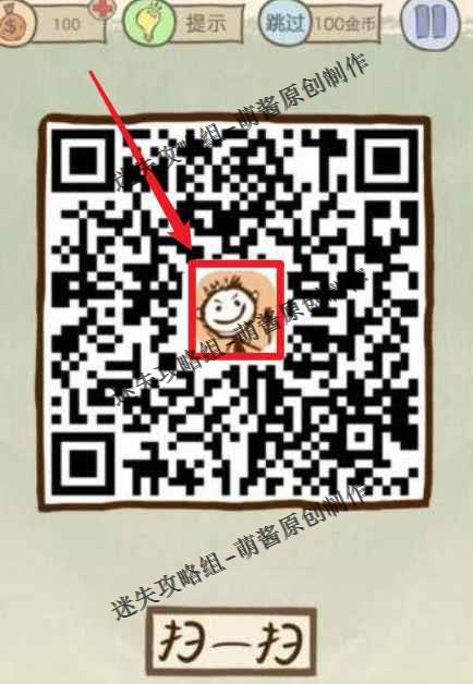 二维码的中间有一个小头像各位看见没有,这个是可以拖动的,我们只要拖动这个小头像将周围的二维码全部擦掉就能完成这一关了。