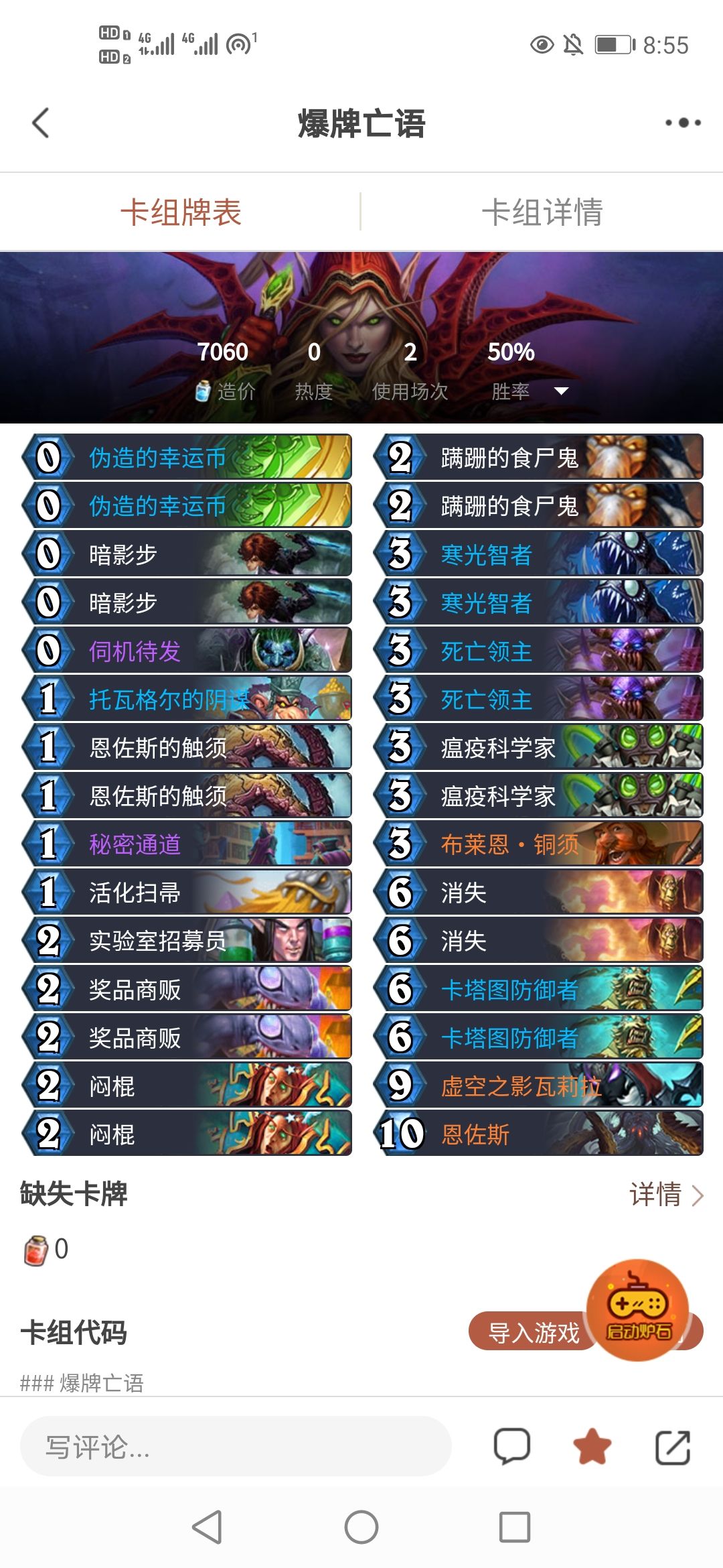 有消失,和瘟疫科学家与触须或食尸鬼配合,4波群解,后期可以靠恩佐斯苟活,还有闷棍2张单解防大怪,以及一堆嘲讽苟活,后期生存能力强。