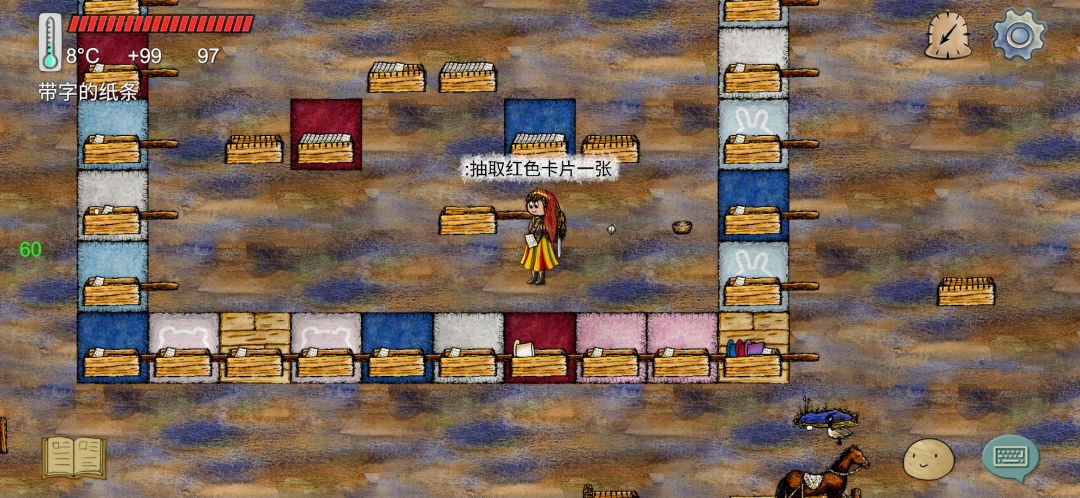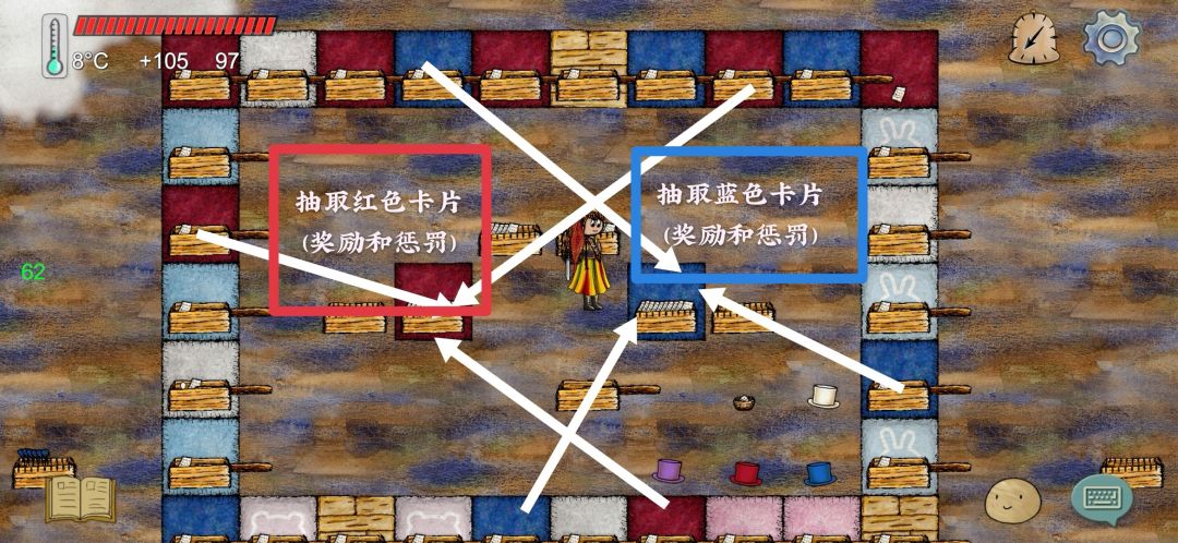 地图上,红色地毯上纸写,抽取红色卡片一张。
