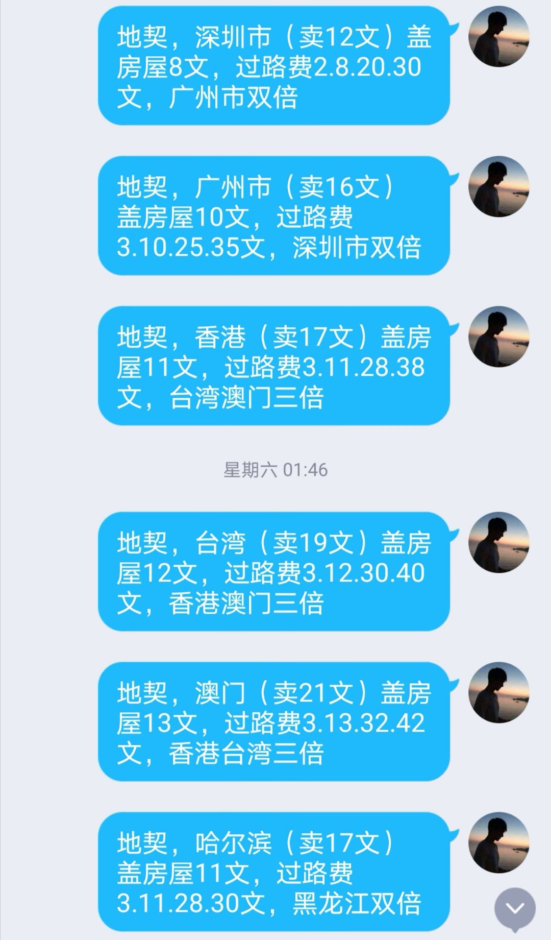 (这里双倍三倍是指,如果同时拥有深圳市和广州市地契,过路费需要给4文/16文/40文/60文,三倍同理)