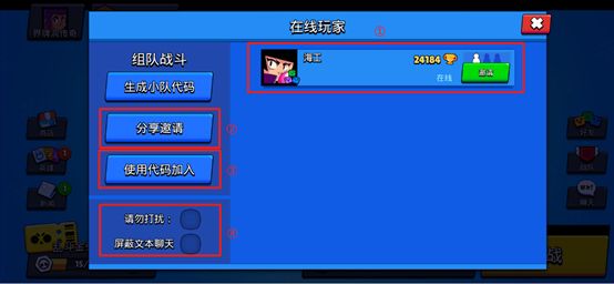 玩家进入别人开的房间,在此处输入代码即可进入。(适用第一次开黑的小伙伴)