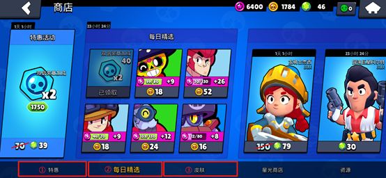 ③ 皮肤:一些最新的、原价的或打折的皮肤