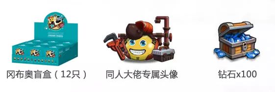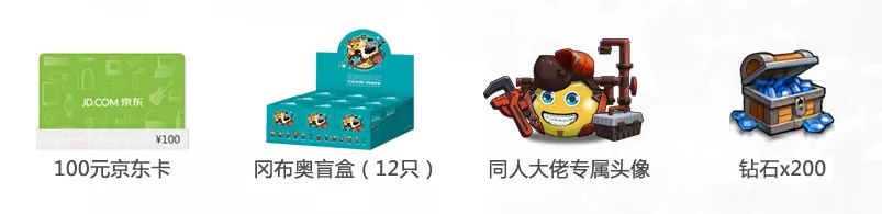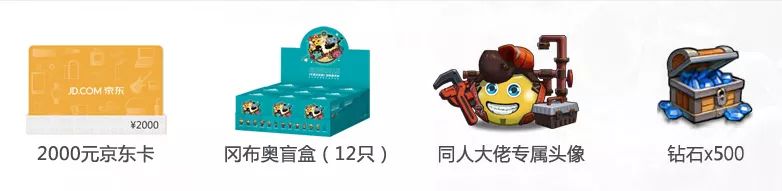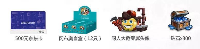 二等奖*2500京东卡+300钻+同人大佬头像(如已有将换成随机颈枕)+ 冈布奥盲盒(12只)