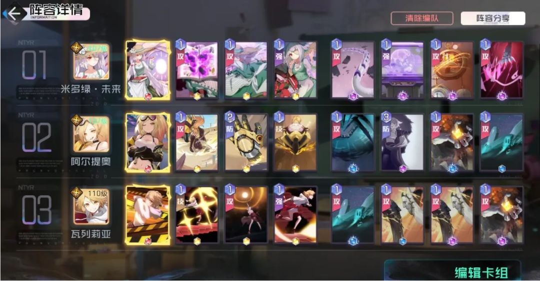 卡组仅供参考,如果有更好的,直接带就行。阵容的话,图中三位即可(强推棒球妹),其他的角色也是可以的(比如萝丝)