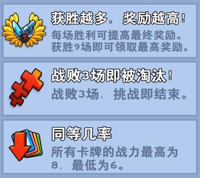 等级上限——强制等级平衡,进入该模式后,基地等级调整为最高6级,卡牌等级调整为最高8级。