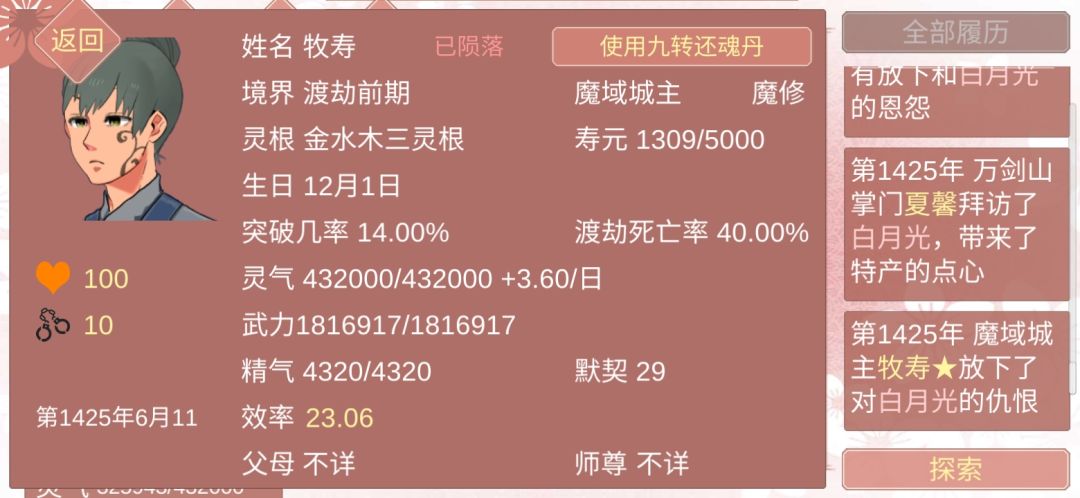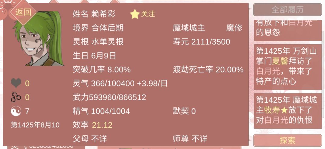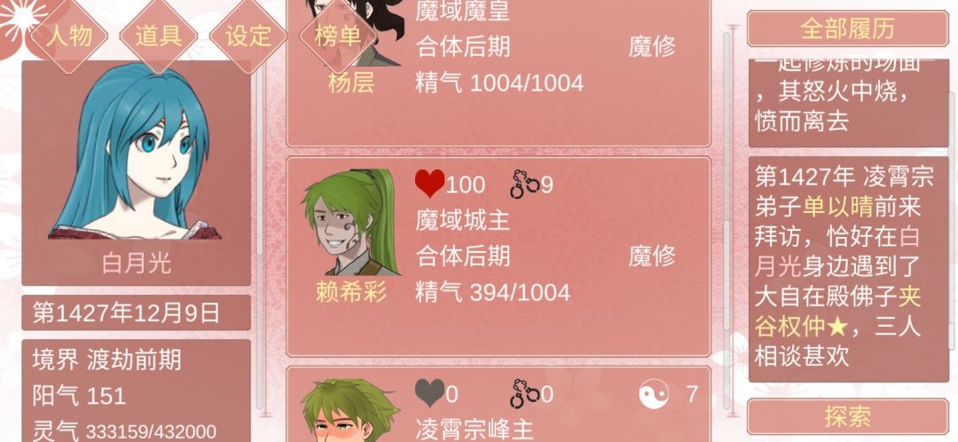 然后我们点开这个人,会发现他直接就是可以攻略的状态,不用费心思遇见,并且大概率有元阳,大部分都是七点,也有八点的。