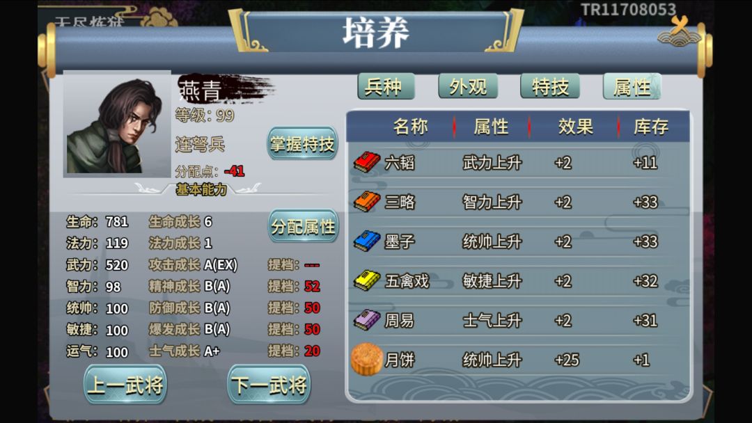 无尽模式的燕青属性分配点数怎么变成负数了?而且也增加不了点数了,是不是有什么bug?麻烦帮解决一下