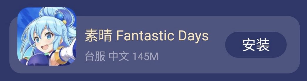 《为美好的世界献上祝福 Fantastic Days》台服,或者简称叫“素晴 台服”、”素晴FD 台服“,发行地区覆盖范围是港台,核心跟日服一致,所以完全可以参考日服内容