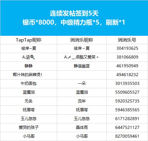 ■连续签到5天以上的玩家中随机抽选3名送出:消消乐挂件*1