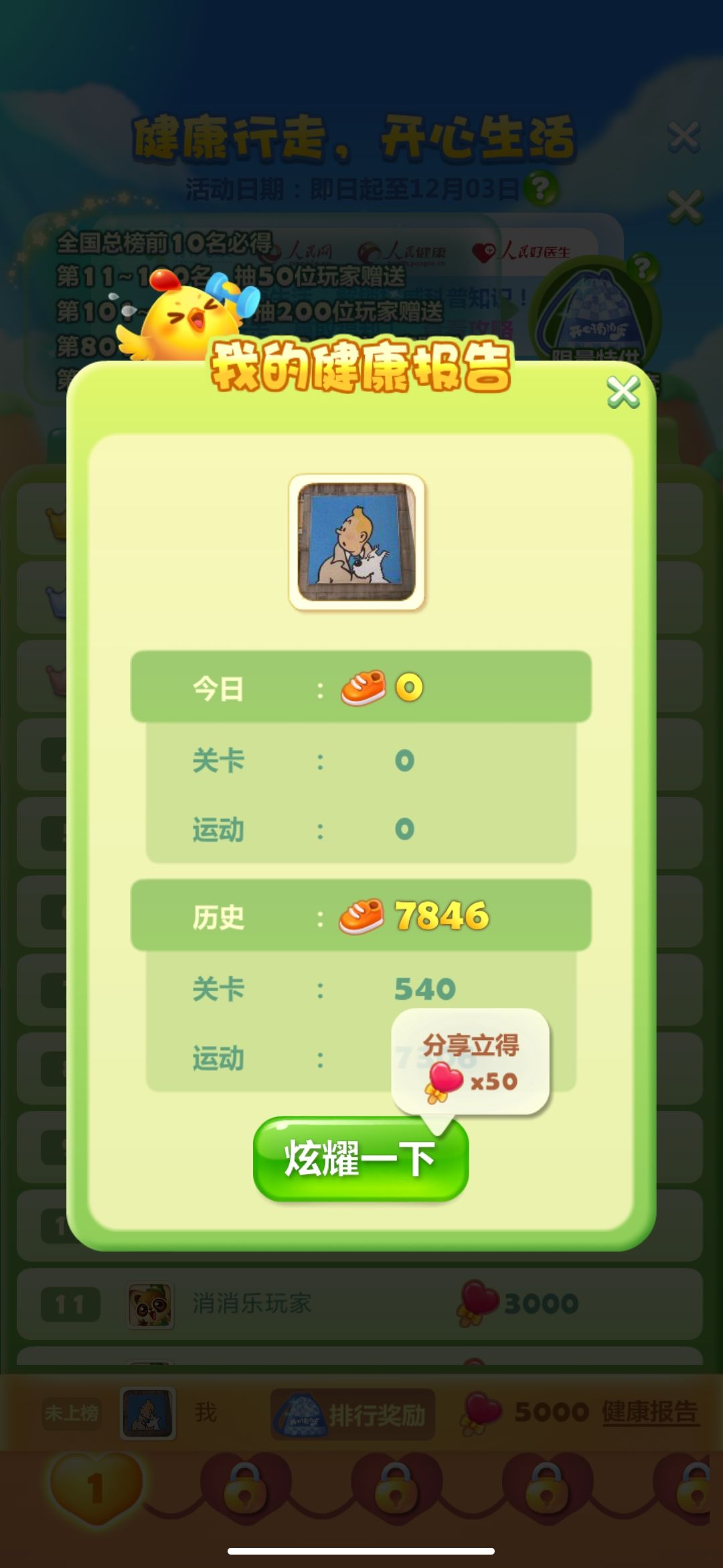 开心消消乐携手人民网、人民健康举办的【健康行走,开心生活】活动正式上线啦!