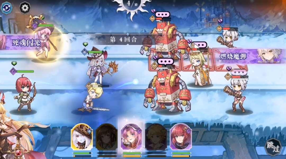 这种五星站位我们没办法AOE,对面后排两个炮妹(薇丝德)都是一炮打一片的主,我们这边怎么站位都要挨炸。我方毫不意外地在第四回合减员两人,对面普遍半血。