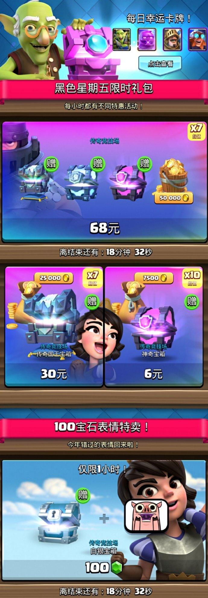 黑色星期五特惠活动开始啦!每组礼包持续1小时,每小时特惠活动都不同!多倍超值礼包、100宝石表情特卖、宝石购买传奇宝箱等爆款特惠...