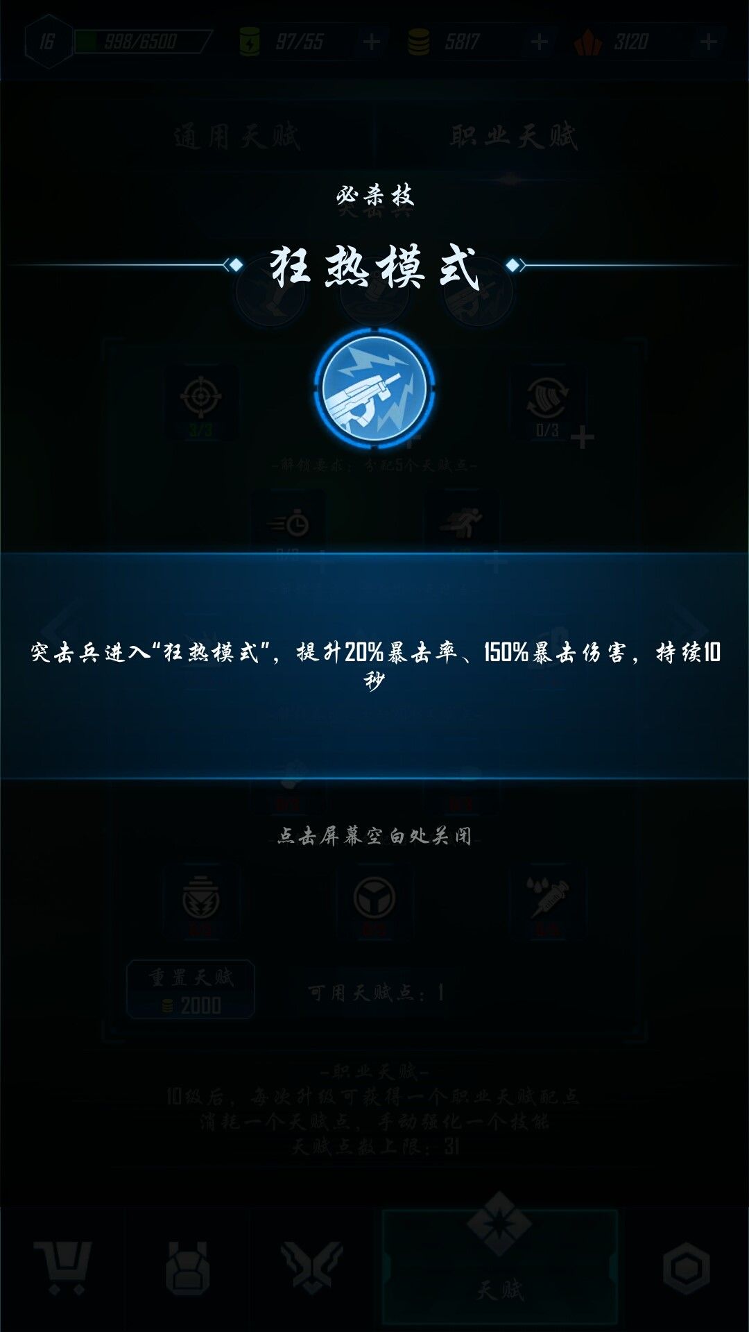 狂热模式:提升10秒20%暴击率、150%暴击伤害。在这个必杀技发起后攻击力将达到最高,虽然只有十秒。