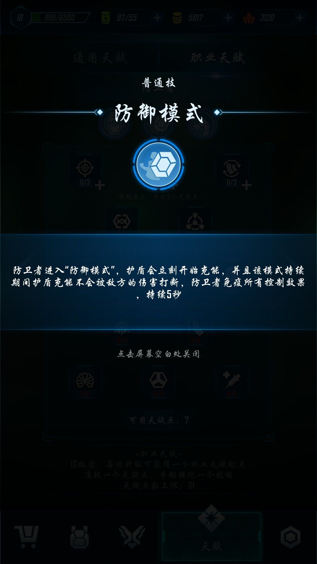 防御模式:进入护盾充能模式,并在这期间免疫控制效果5秒。