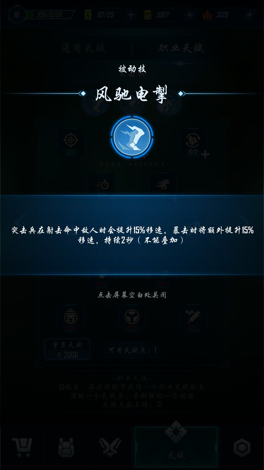 风驰电掣:突击兵在命中敌人时会提高15%的移速,暴击时将额外提升15%。其主要作用便是能够更快速地跑路或避开敌人的攻击。
