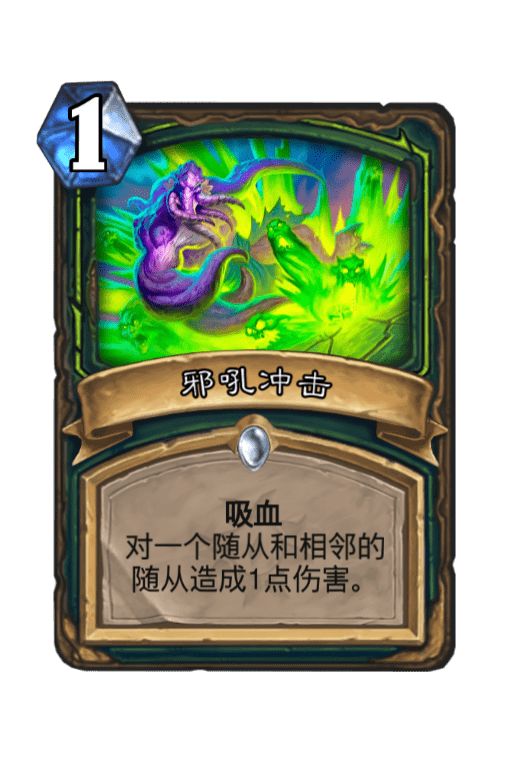 这里我们把他们放在一起讲,因为都是我们的主要伤害和恢复手段。眼棱 在流放位时可以一费打出,极大的节省我们的解场或者斩杀费用。邪吼冲击 则本身就是一费的一个AOE法术,尽量留着斩杀。