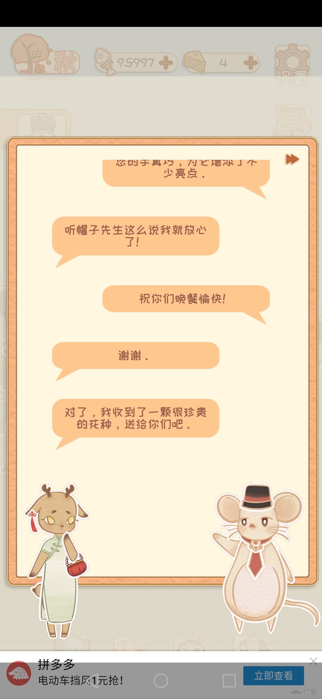 鹿小姐剧情已经全部触发了,最后说会给花种但我没收到啊