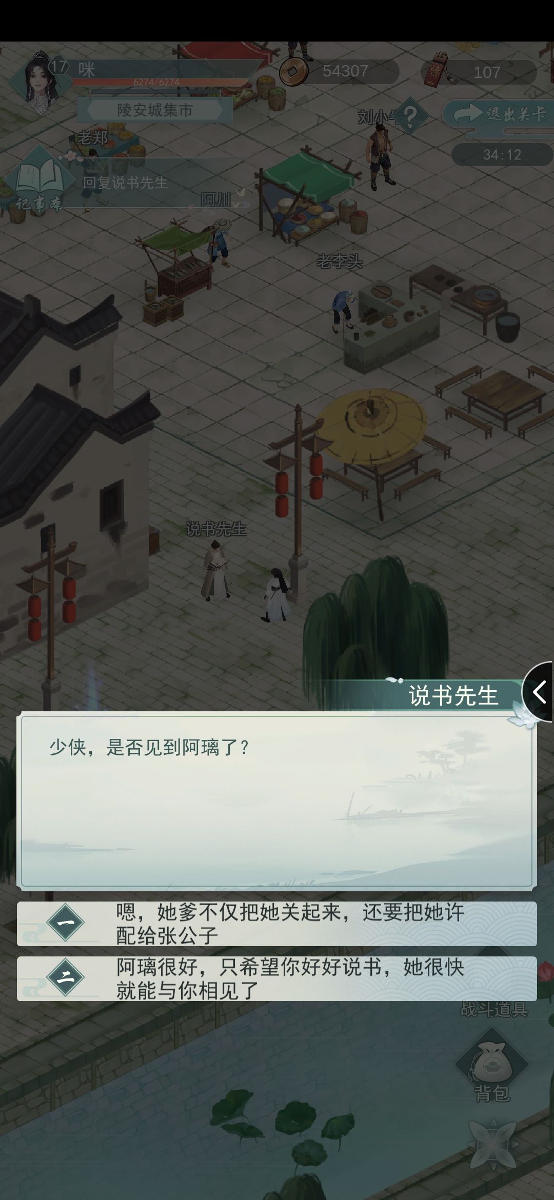 打到第三章,看到有选项,我选了第一项,好像是给了侠义值和突破丸?