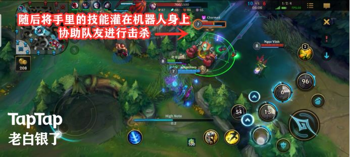 此时,队友金克丝和盲僧已经在赶来的路上,小萨看着追击的机器人和VN不禁“恶从胆边生”,回头就是一套3→4→1→平A,完美衔接控制链并打出所有伤害,机器人无法反抗,直接歇逼。