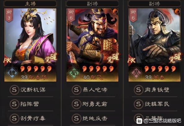 20 级觉醒后推荐:主将 蔡文姬 陷阵营,赞避/屏障,张飞 横扫千军 刚勇无前(落 凤),周泰 盛气凌敌 三势阵
