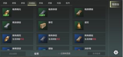 锻造台:主要是将石头加工为晶石的灵器,同时可以加工在妄想山海世界中采集的各种矿石,例如铜铁银等,可加工部分武器装备和部分家具。可以升级,分为初级,中级,高级。