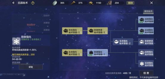研发秘术需要物资,所以前期的话可以让氏族成员多多捐献物资,研发之后可以获得不等的属性,以及攻击加1%。这些可以帮助氏族成员增加战力,但是一旦有成员退出氏族后,他将不享有这些加成。
