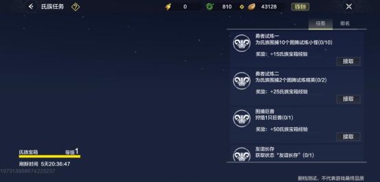 氏族任务可获得氏族宝箱经验,经验越高获得的宝箱越好,而且也会给很多的氏族贡献。氏族贡献前期的作用很大,所以尽量还是鼓励氏族成员多参加一些氏族活动。氏族活动一般都比较简单,可以鼓励氏族成员上线之后先接氏族任务,可以在做日常时一起完成。