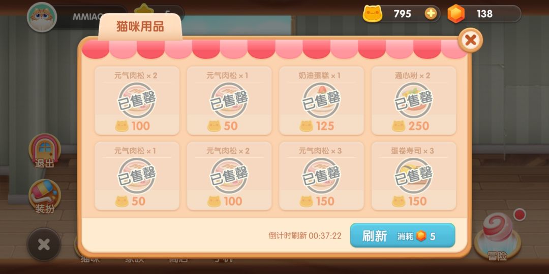 倒计时结束以后会重新倒数 但是商店东西不会刷新 没办法购买新的物品