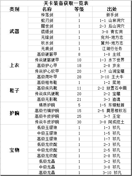 关于各个武器、装备的获取方法请查找对应攻略!如有错误遗漏,请留言指出,补充,谢谢!