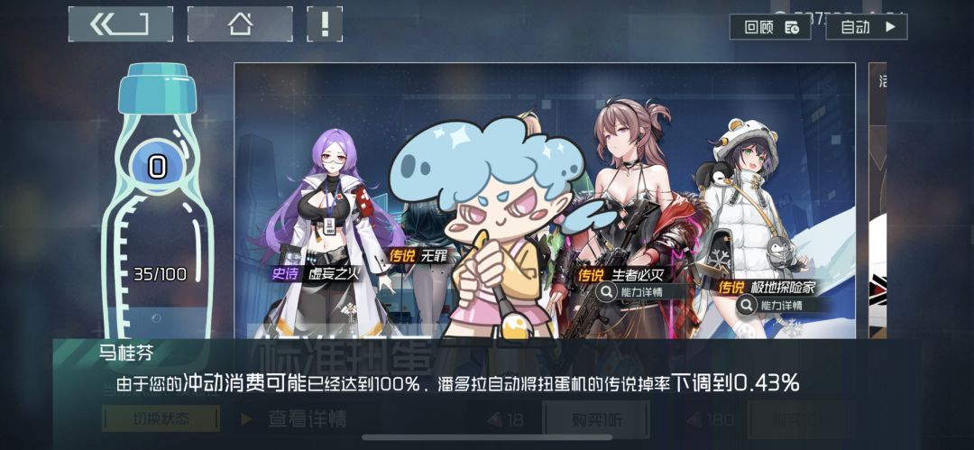 氪金变强的充值界面,新人礼包,限时礼包,等级礼包,首充双倍,蛋池里Live2D的小姐姐(以及她们可怜的概率),sr,ssr的分级,一命二命,一破二破的角色突破,可以说,这个游戏光是从氪金这一点上,就囊括了中国大部分手游的骗氪套路。