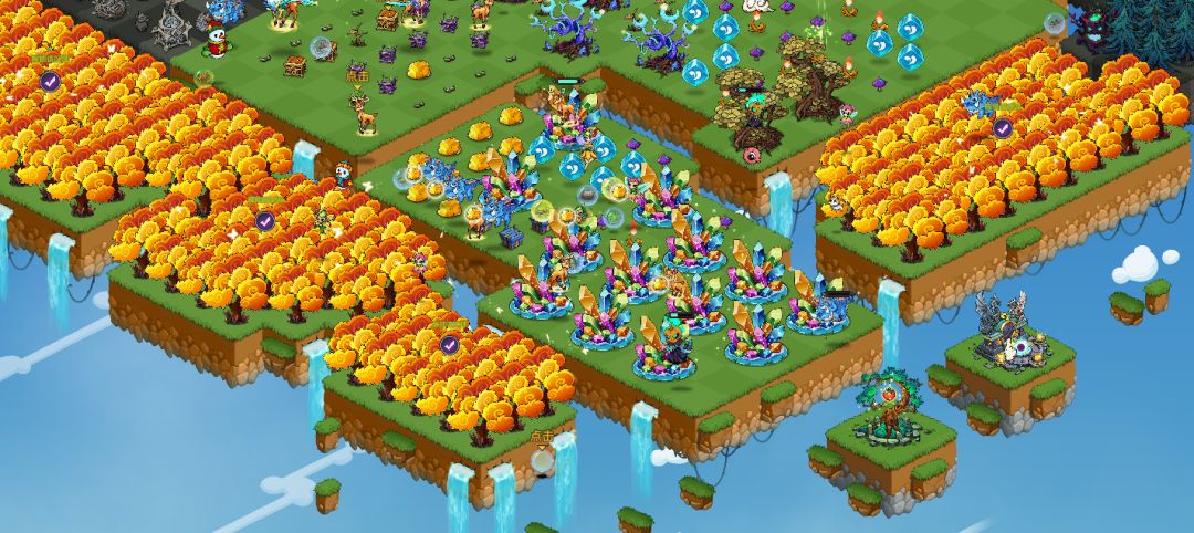 看到这片需要重新焕发生机的营地,我的上午时光终于要丰富起来了!这些闪闪发光的奇迹、小屋、矿脉等等都成了我努力收集并不断合成进化它们的动力。无论什么时候,只需要轻轻点击就可以召唤怪物来采集,再用5合2的方法把它们合成到更高一级。