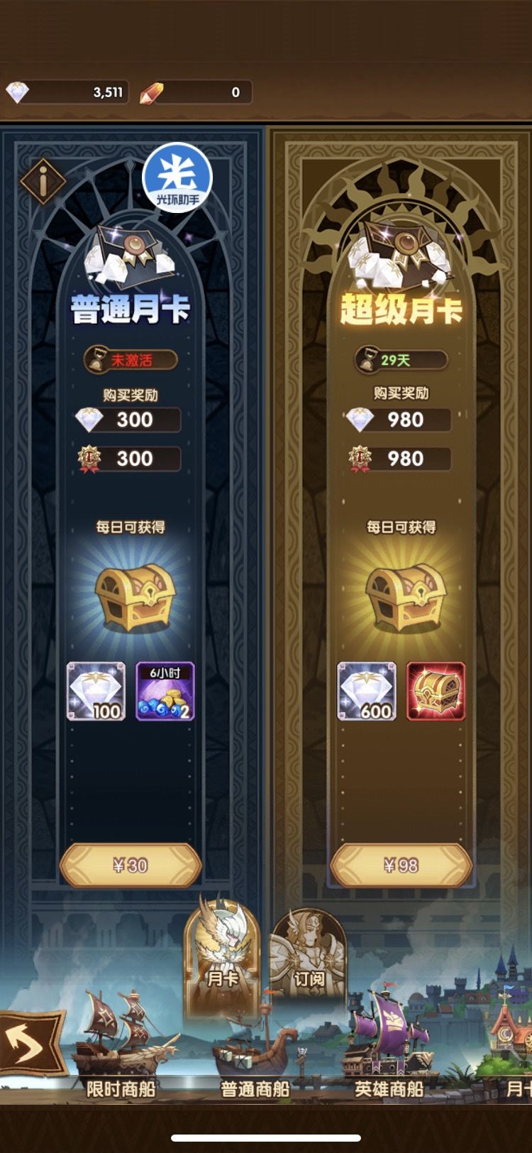同样的超级月卡,为什么少一个箱子