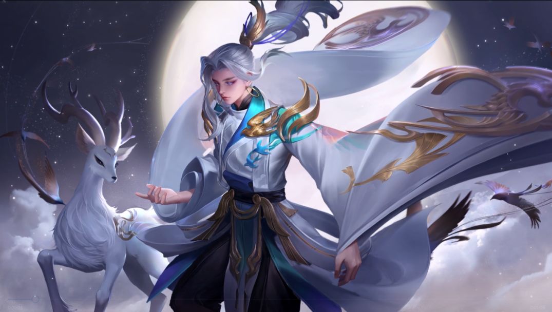 【技能特效】以皮肤设计的“白金”配色为主色调,搭配蓝色作点缀,尖锐轮廓和金属喜鹊刻画出云中君作为刺客的凌厉感受,而羽毛和银杏元素则将皮肤主题的唯美之韵保留了下来。