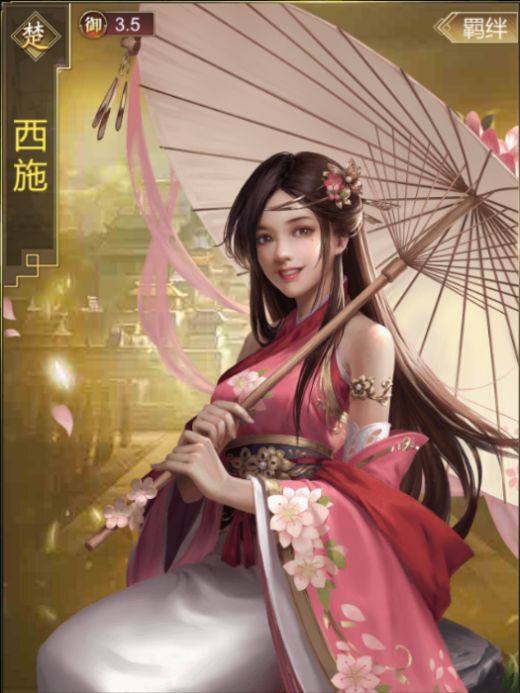 第一次抽征服卡包的时候,抽到了7个西施,我一度怀疑这个武将是3.5里面最弱的,看技能介绍感觉也是没卵用的武将。其实细细研究西施的技能,会发现这个武将的确没什么太大用处。