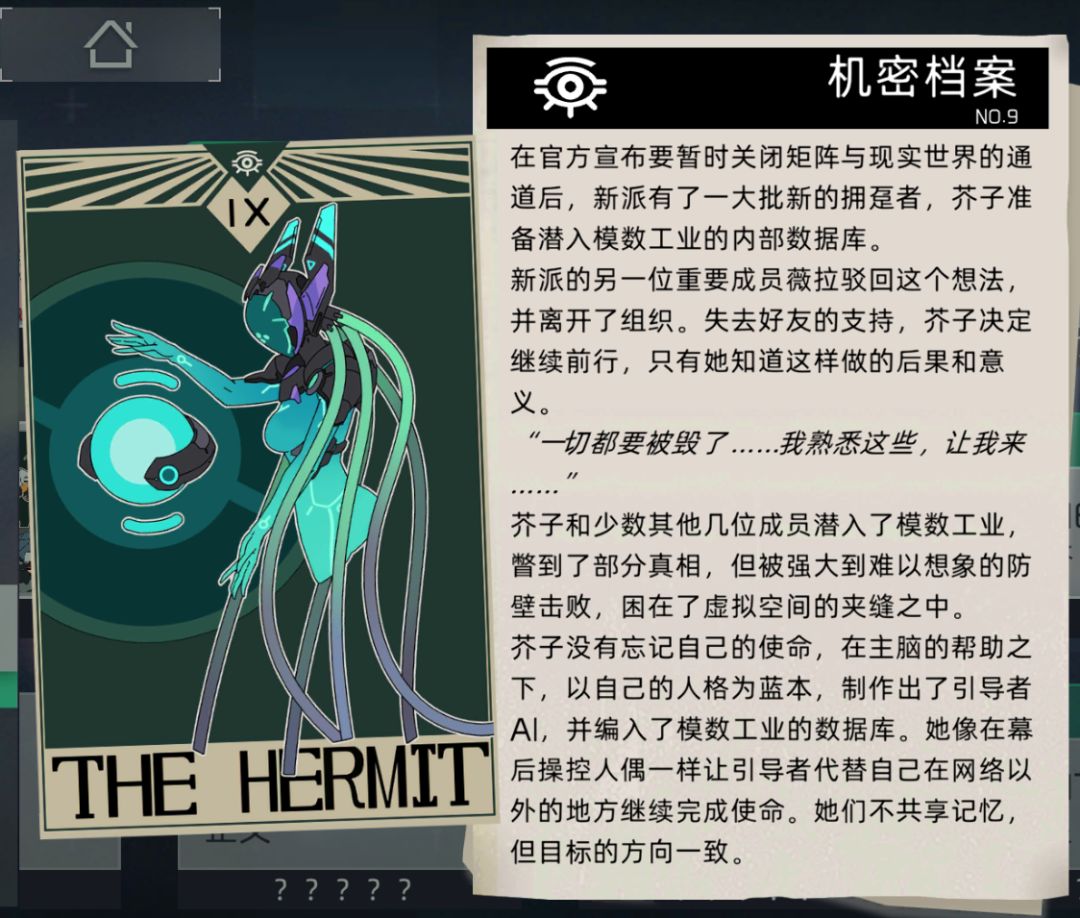 总结一下,新派是洪潮初期一个黑客团体组成的组织,领头人是芥子。为了寻找真实,芥子和少数成员潜入模数,虽然得知部分真相,最终还是难逃被回收的命运,新派核心成员也被剿灭,至此新派已经可以算是被消灭掉了。关于芥子的一些思考,以后有机会再另说