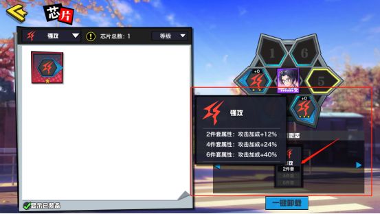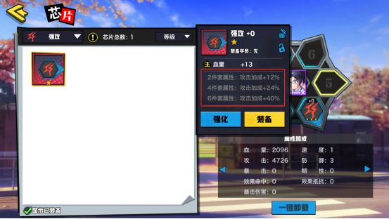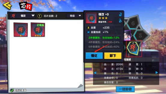 会长大人可以点击此处打开芯片界面,点击左侧更换芯片按钮可进行穿戴、强化操作。▽
