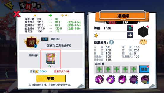 升阶可以提高学员的属性,提升PVE战斗中学员可升级的等级上限。