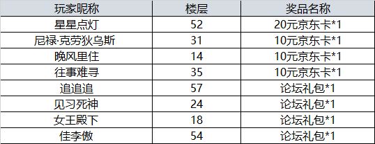 亲爱滴各位小伙伴,本次活动获奖名单如下,恭喜中奖的玩家~