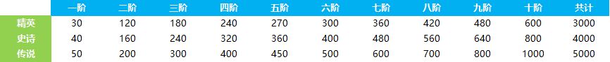 Q2:不同品质英雄进阶所需英雄粉尘的数量?