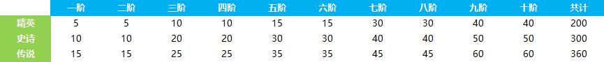 Q1:不同品质英雄进阶所需英雄碎片的数量?