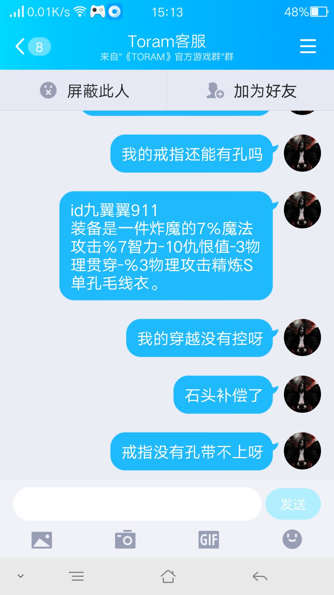 为啥给我补偿的装备都比不上原来的。不是戒指不开孔就是我炸魔的衣服没有附魔。是因为咱没充648嘛😂客服都不理咱俩😂