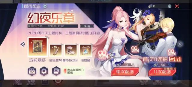 绽放旋律·珈儿、白夜辉光·幽桐、绕弦暗香·爱缪莎三件时装为配送积分限期兑换,12月30日活动结束后将无法使用配送积分进行兑换。