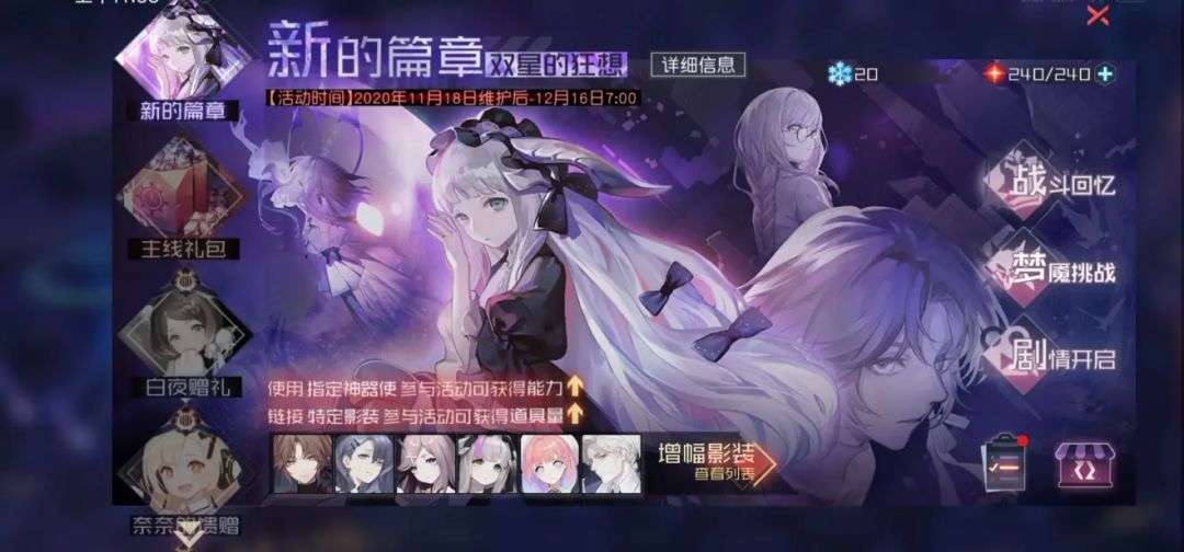 这里是意识砌成的高塔,徘徊着无数次轮回失败后残留的梦魇。少女神明默坐在噩梦的囚笼当中,等待着你的到来。活动时间:2020年12月2日维护后——2020年12月16日7:00