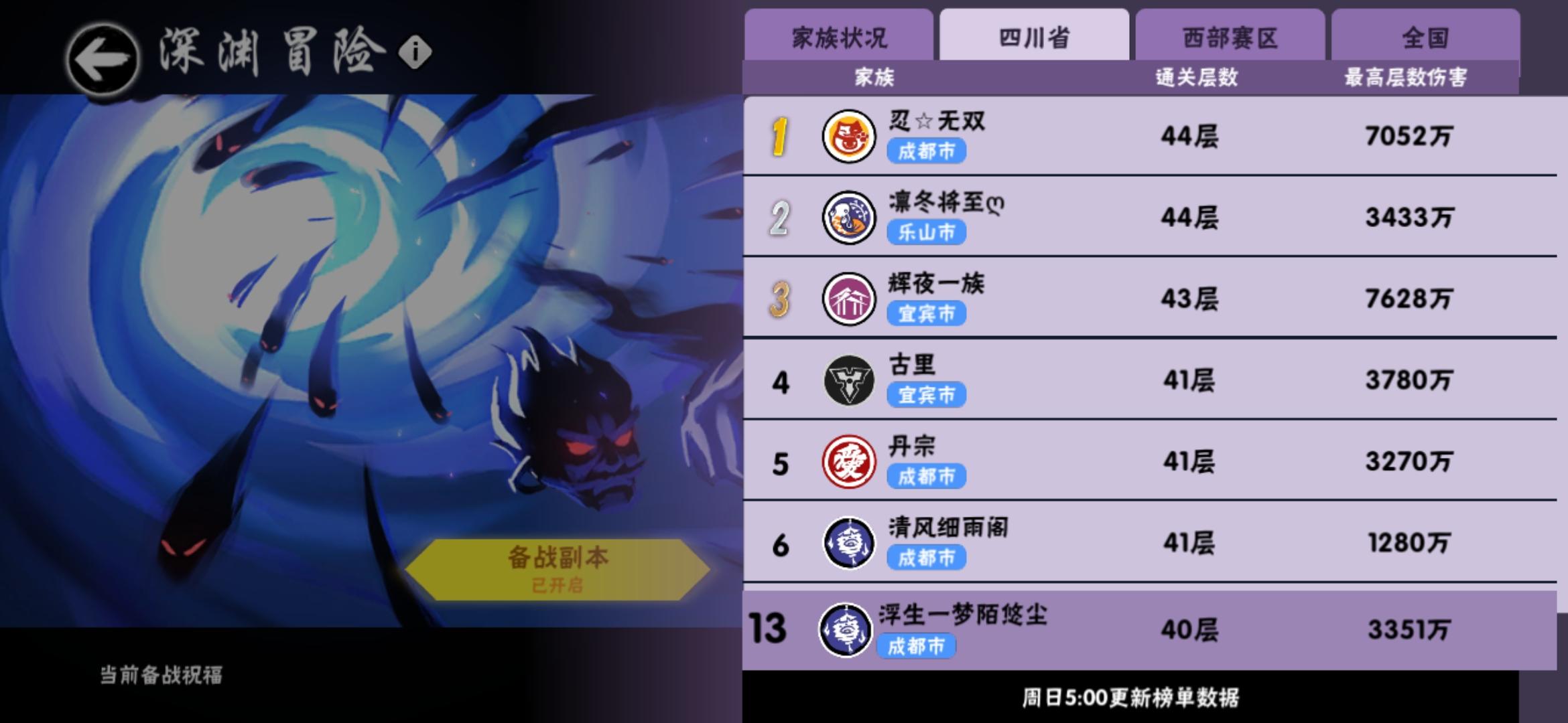 浮生一梦招人啦,一个贼好贼活跃的小家族,建族百天以来,从一个默默无闻的一级小家族到现在的七级家族(还是默默无闻),我们是一个气氛活跃,族员活跃的家族,家族主QQ群,每天消息多了不说,近万还是有的,我们虽然只是七级家族,)但我们六级的时候深渊就可以上四十了😁,现在家族西部78 ,深渊41,上周深渊我们参加者有74人!!(我们只是靠爱发电的小家族,跟家族没法比),欢迎各位活跃,活跃,的大佬也行,萌新也行,欢迎来我们QQ群水群,883749327 ,对了我们上周偷榜也差点成功呢😂
