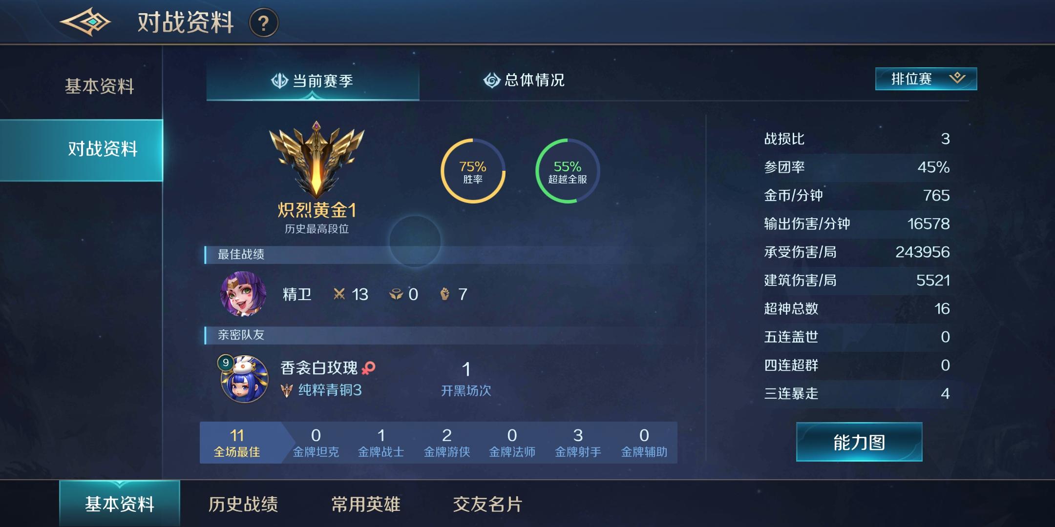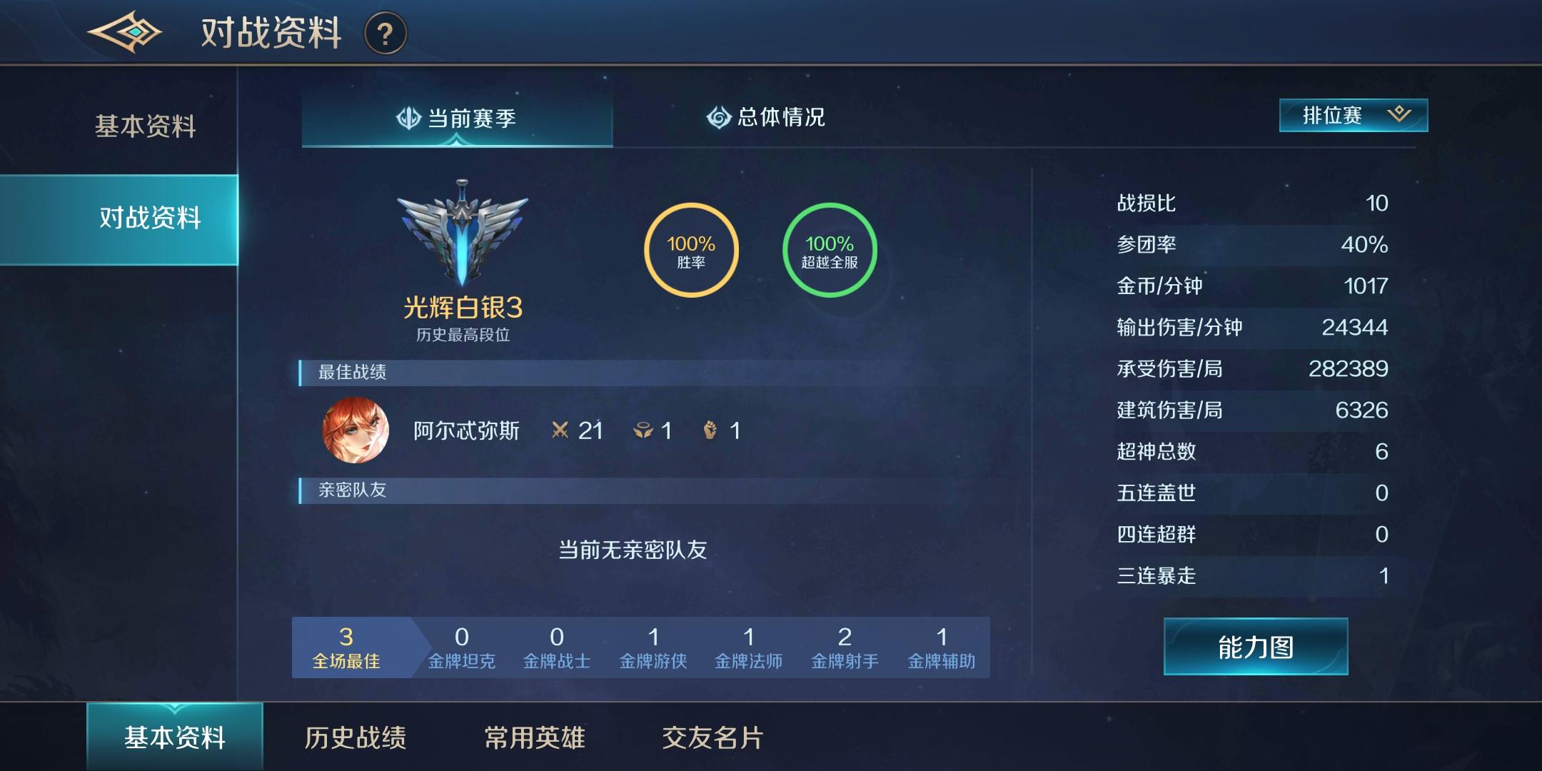 我段位挺低的钻四,排位赛给我了三个黄金一个白银队友,OK,我也勉为其难接受,毕竟玩家少么。然后我看了一眼对面的段位,我勒个去,俩星耀一钻石一铂金一黄金!!!咋滴???我隐藏分打到王者了??不给对面钻石俩星耀我欺负人了???这游戏还有平衡可言????下面放排位赛截图,不信的可以差ID验证。