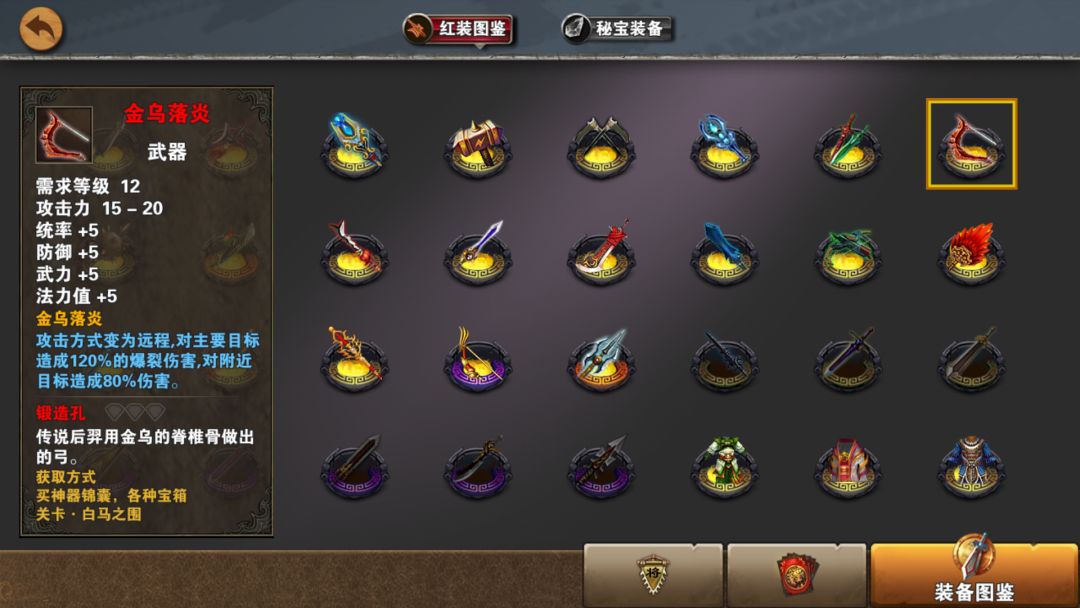 金乌落炎。在剧情图的白马可以刷箱子,箱子有一定几率爆出来。这个武器比较没有存在感,只在新手阶段没有好武器时可以弄一个,最大的优点是视觉效果,遍地开花,让人眼花缭乱。