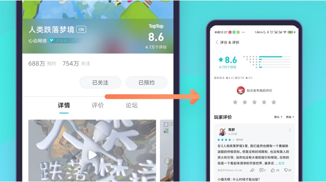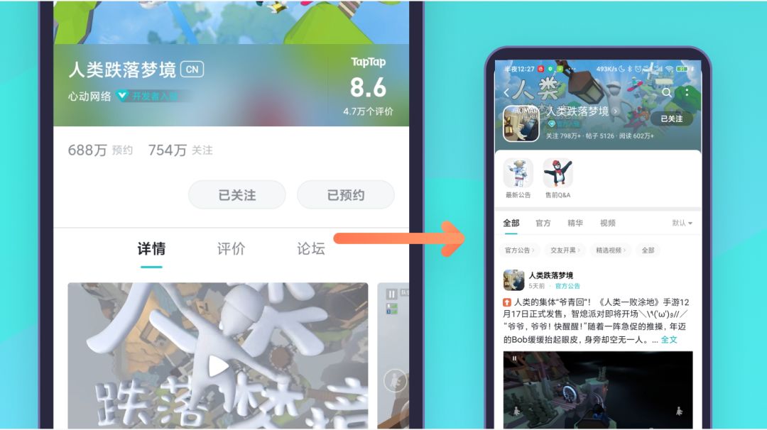 • 游戏详情页顶部Tab点击论坛或评价直接进入相应页面